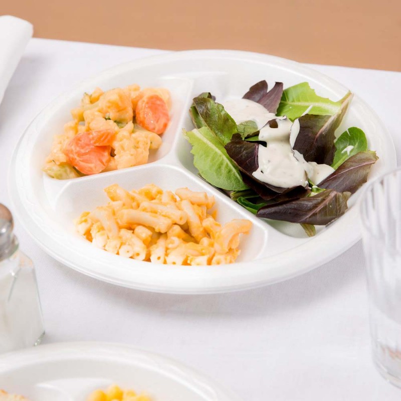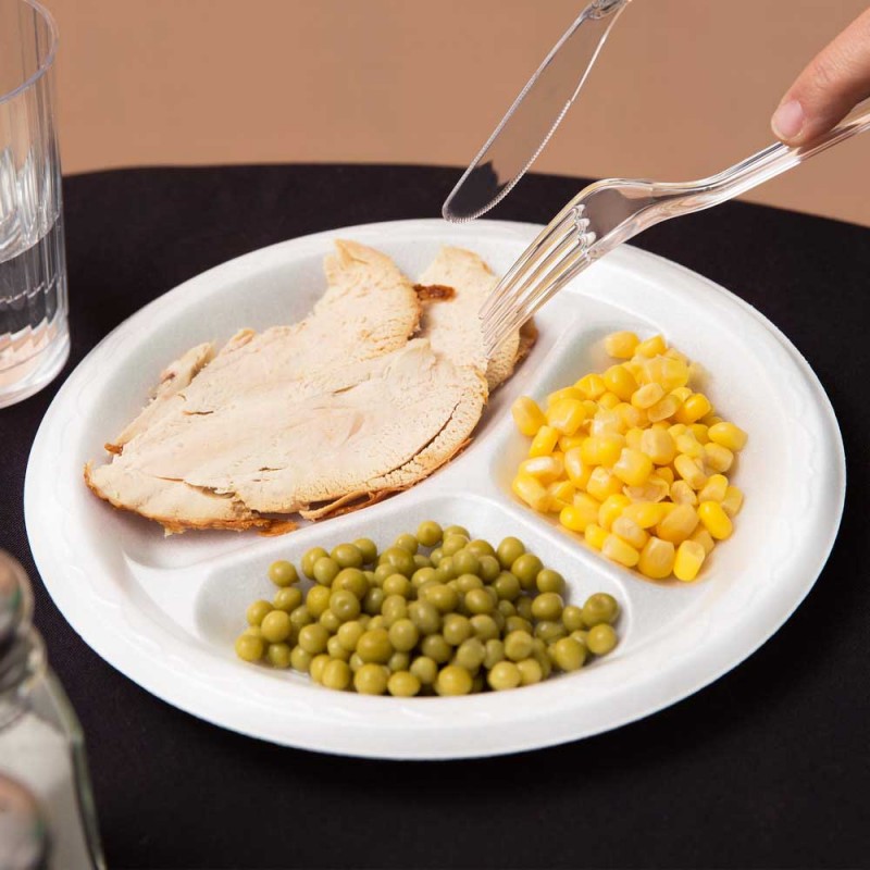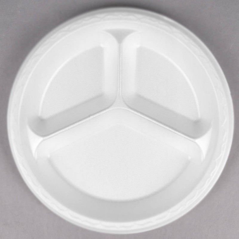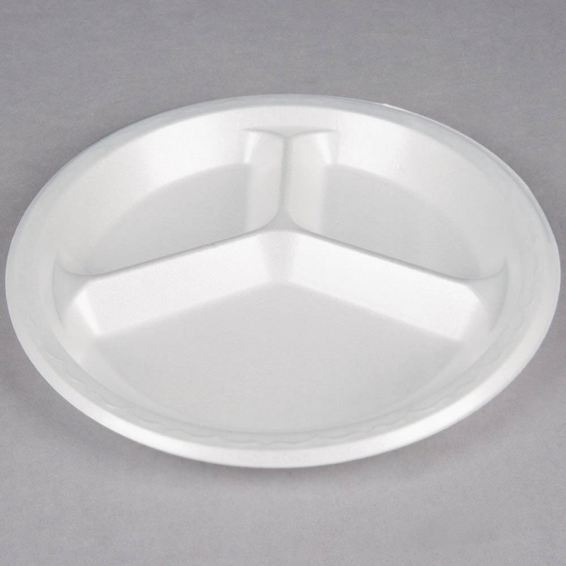 Dĩa xốp PS đựng thức ăn nóng hoặc lạnh, có 3 ngăn tiện dụng
